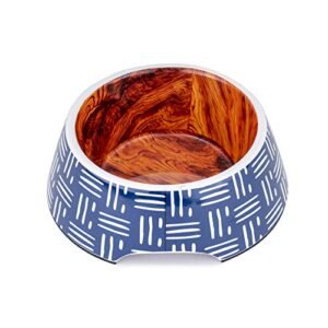 Designer Dark Blue Detachable Anti-Skid Melamine & Stainless Steel Food Bowls for Dogs (380 ml)